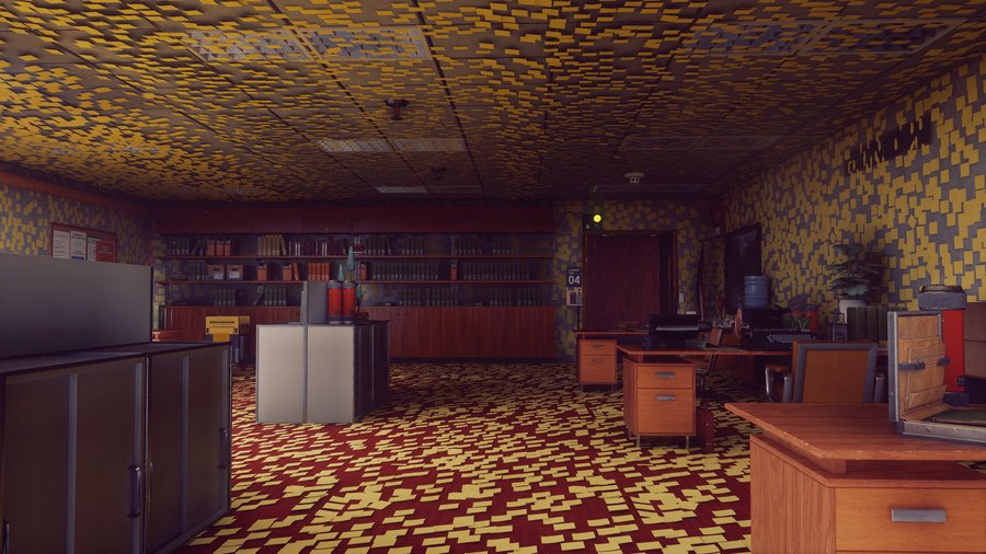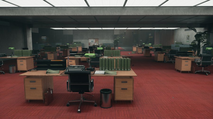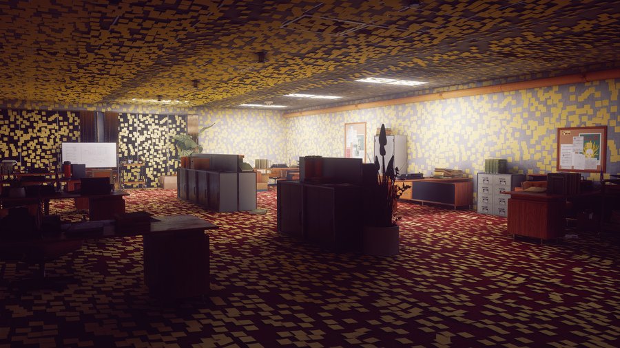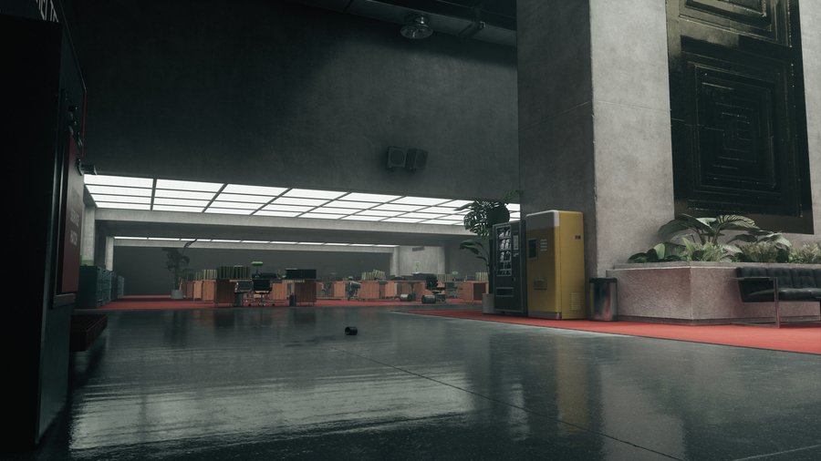Здание состоит из нескончаемых коридоров и пустых рабочих пространств, в этой локации игрок не встретит сотрудников, занимающихся ежедневной рутиной, место выглядит мистически заброшенным, словно все люди внезапно пропали по щелчку пальцев.
