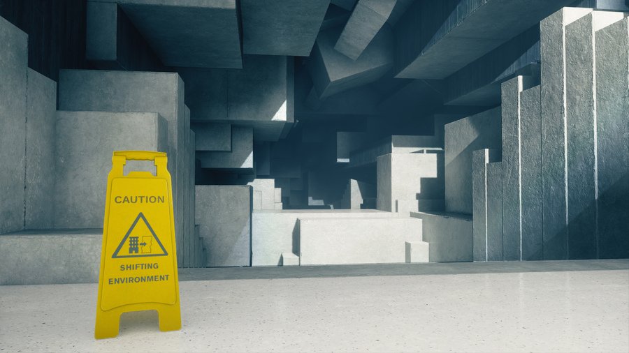 Игрок часто становится свидетелем того, как стены раздвигаются, создавая новые пути, или как целые сектора перестраиваются у него на глазах. Это визуальное и игровое воплощение состояния неопределенности, перехода, порог «между» пространство не является ни тем, чем оно было, ни тем, чем оно будет, штаб квартира перестает выполнять свою первоначальную функцию рабочего пространства.