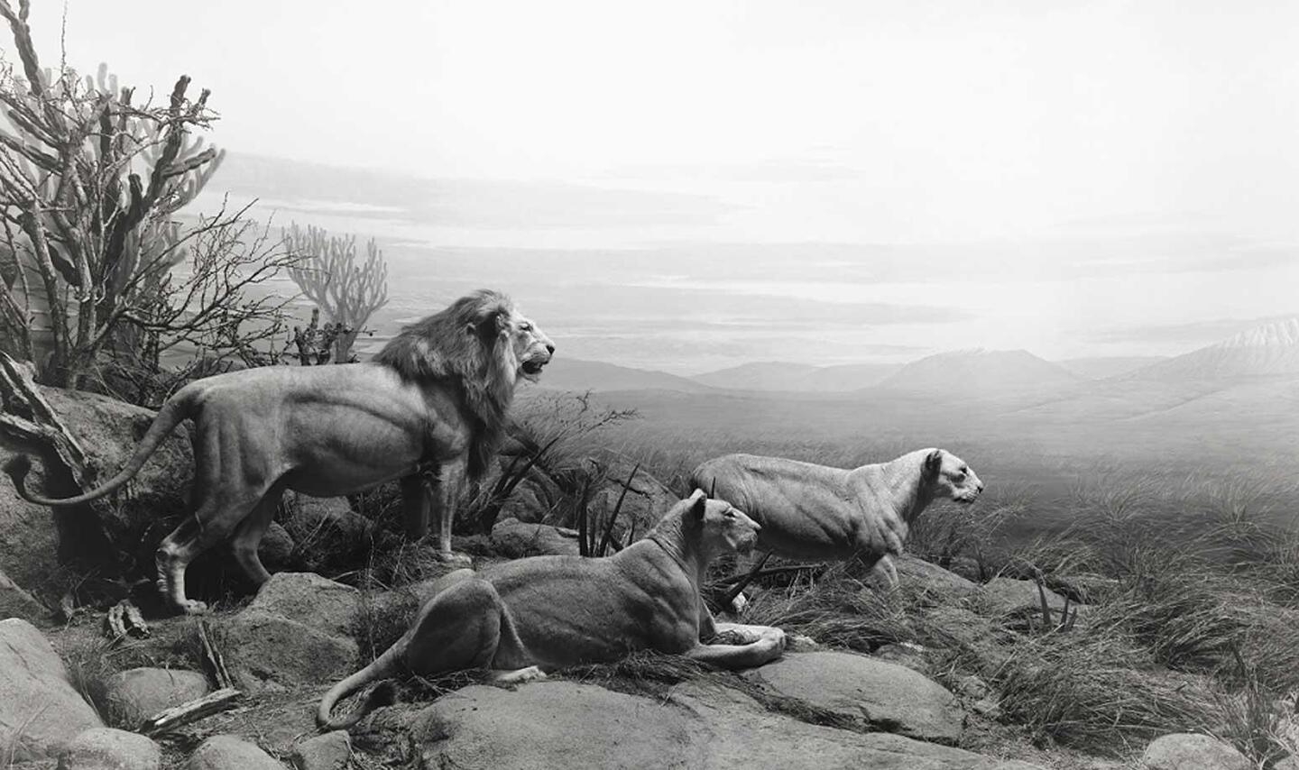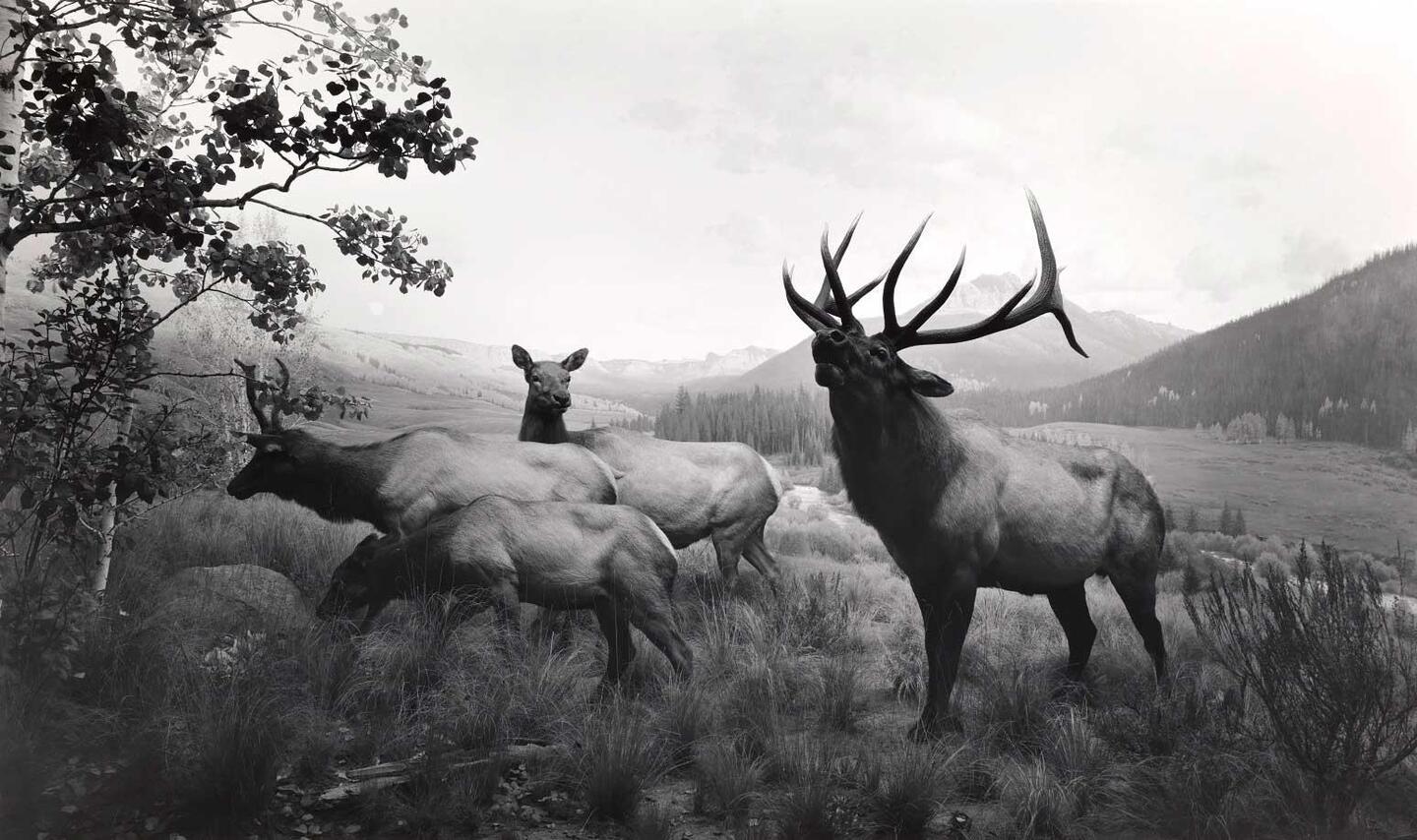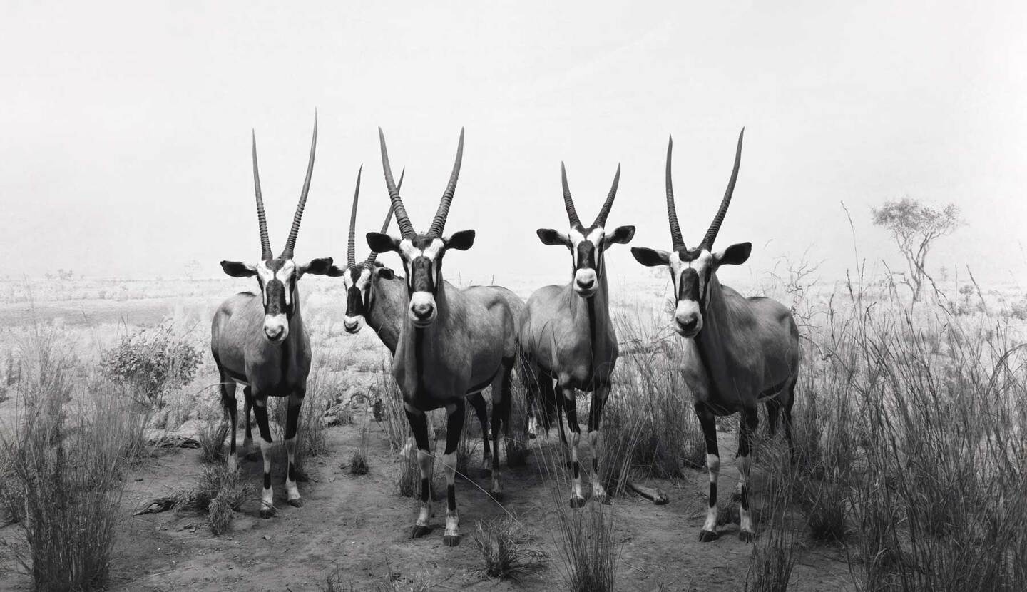 Хироси Сугимото. Из серии «Диорамы»: «Волки», 1994 / «Белый медведь», 1976 / «Гиены, шакалы, грифы», 1976 / «Благородный олень (вапити)», 1980 / «Серны», 1994 / «Львы», 1994