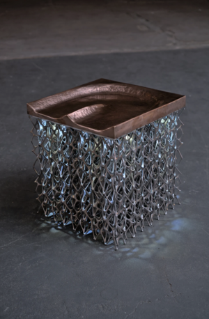 Изготовленный из меди и алюминия в структуре, вдохновленной природой, «Кожный стул» сочетает в себе красоту и функциональность, чтобы производить энергию с помощью тепла тела его владельца. Когда вы сидите, тепло проходит через кресло, заставляя его мягко светиться. Чем больше тепла, тем ярче будет светиться стул.