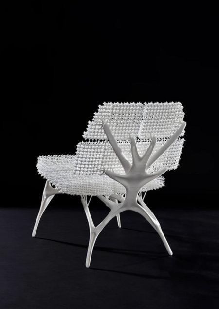 Йорис Лаарман сочетает передовые технологии с научными исследованиями для создания работ, бросающих вызов традиционным методам дизайна. Его «Костяной стул» был создан с использованием алгоритмов, которые имитируют рост костей и распределение материала для структурной эффективности, демонстрируя силу интеграции органических принципов в функциональный дизайн.