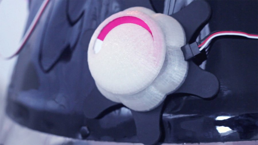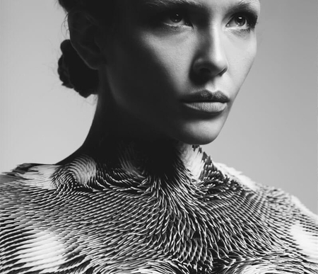 Междисциплинарная дизайнерка Бехназ Фарахи в проекте «Caress of the Gaze» представляет напечатанную искусственную кожу, которая, считывая взгляды людей, трансформируется.