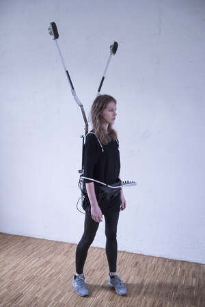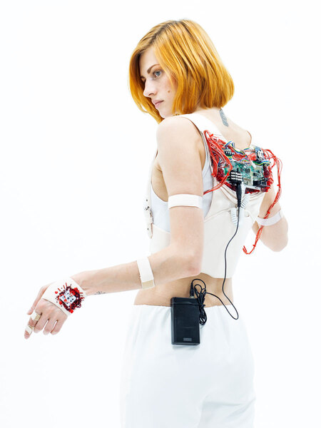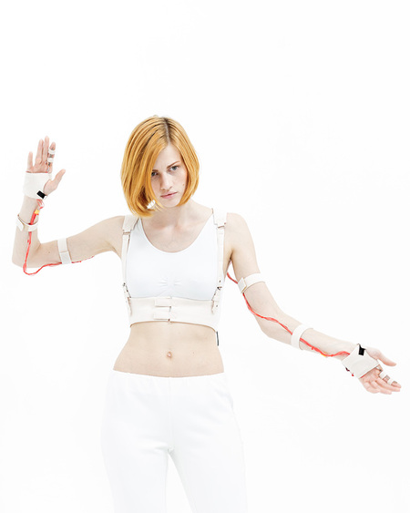 Анастасия Алехина в проекте «Nyropsis» создает технологический прототип «второй кожи», генерирующий звук в зависимости от движений перформера.