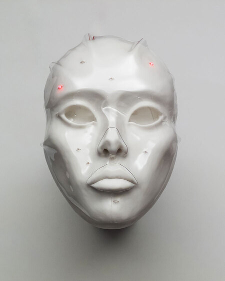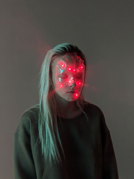 Проект «Red Pixel» Анастасии Алехиной — это электронная маска, которая имитирует высыпания на коже лица. Задача проекта состоит в том, чтобы показать вариативность состояний тела и подходов к нему, тем самым продолжая размывать границы между человеческим и кибернетическим телом.
