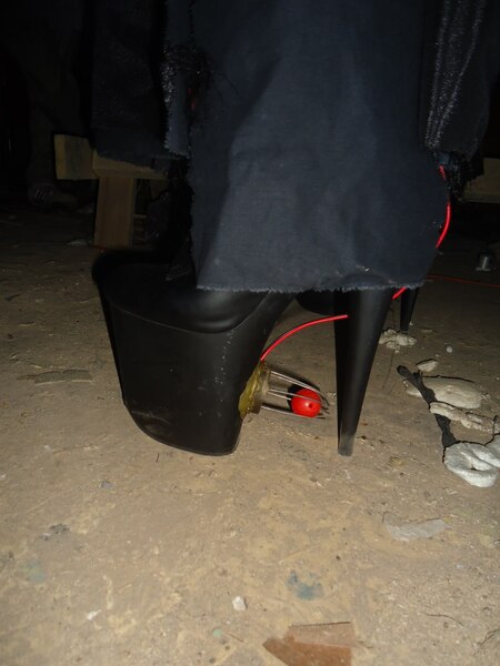 В данном проекте человек становится частью музыкального инструмента, подчиняющегося алгоритму машины. К рукам и ногам перформера подключены миостимуляторы, которые по сигналу заставляют мышцы сокращаться, что в свою очередь приводит к звукоизвлечению из подвешенных объектов.