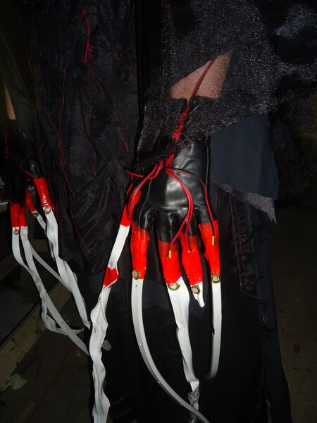 Звучащий костюм собран из контактных микрофонов, звукоусиления и динамиков. Таким образом эдектронные составляющие превращают «Выворотня» в не только получеловеческое и полуживотное, но и кибернетическое существо.