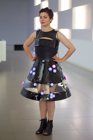 Испанская художница Мария Кастельянос в проекте Enviroment Dress — сконструировала платье, которое с помощью датчиков, анализирует внешние факторы: шум, температуру, атмосферное давление, ультрафиолетовое излучение и прочее.
