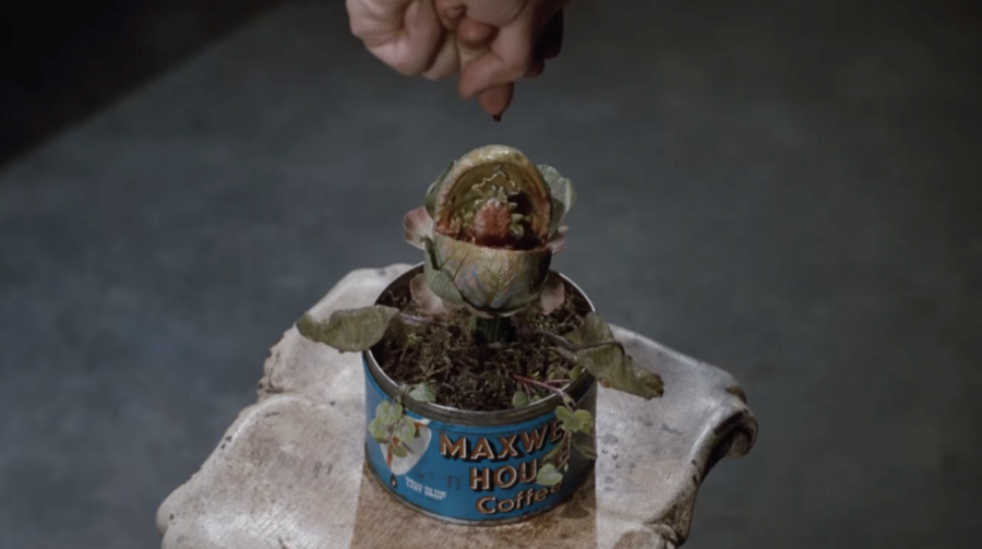 Появление Audrey II в жизни Сеймора начинается не как вторжение врага, а как подарок судьбы. Сеймор находит странный бутон после солнечного затмения. Он приносит Audrey II в магазин Мушника, и внезапно дела начинают идти в гору: цветок привлекает посетителей, растёт популярность, появляется перспектива нормальной жизни. На этом этапе Audrey II идеально играет роль союзника, почти талисмана удачи.