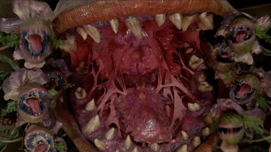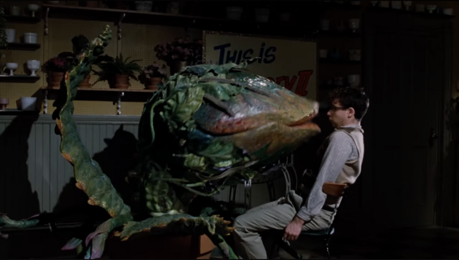 Кадр из фильма «Маленький магазинчик ужасов», Audrey II съедает Орина