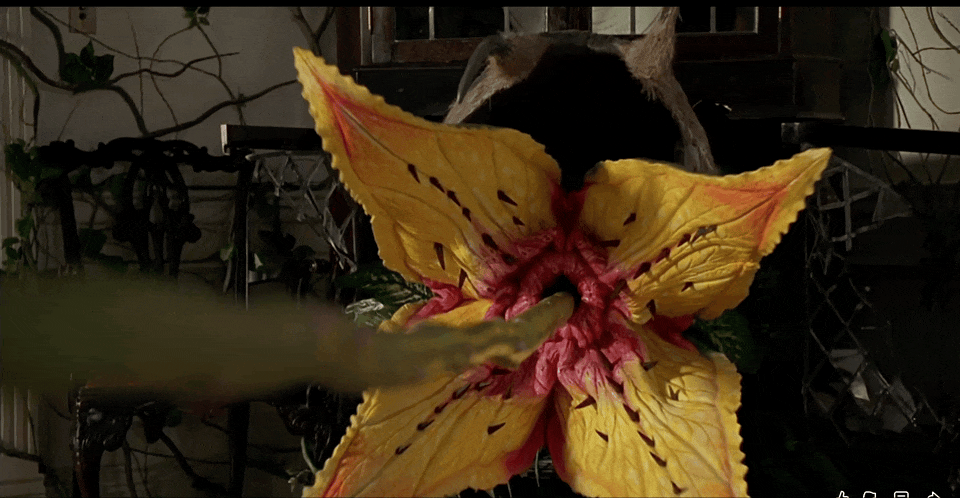 Джуди (героиня Кирстен Данст) кидает кубики, игра выкидывает сообщение «Растут быстрее чем бамбук, но берегись их цепких рук», и внезапно в доме начинают вырастать лозы. Сначала это выглядит просто как дикая растительность, которая выламывает пол и стены, но через секунду становится понятно — это хищник. Одна из лоз ведёт себя как щупальца — цепляется за ноги, обвивает тело и пытается утащить героя в пасть цветка.