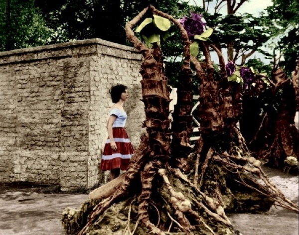 В фильме плотоядные растения действуют как огромные венерины мухоловки: они обвиваются вокруг людей, душат, пытаются втянуть внутрь.