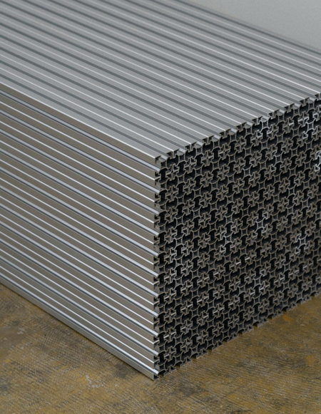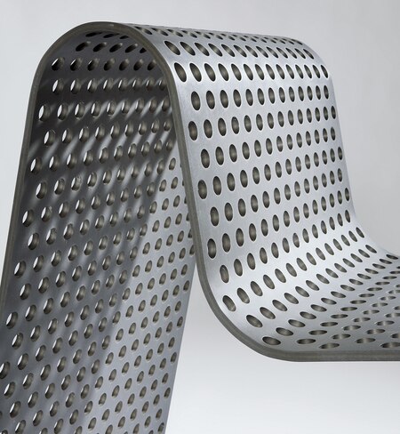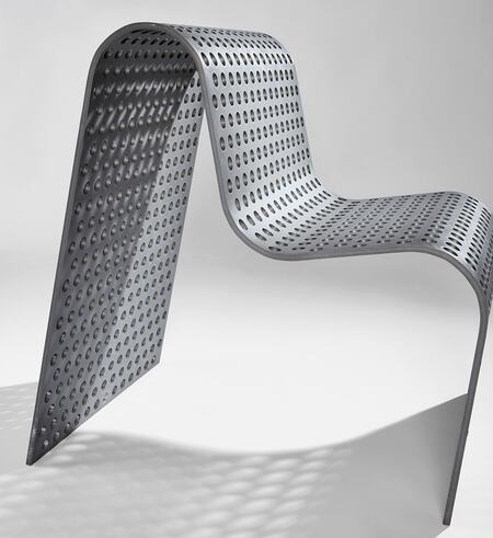 Так, Max Lamb работает с листовым алюминием, используя его способность гнуться, сгибаться и собираться в объём. Поверхности не маскируются — видны линии сгибов, резки, стыков, которые становятся визуальными элементами формы. Металл диктует конструкцию, ритм и профиль объекта, превращая утилитарную скамейку в композицию, которая существует на стыке архитектуры и предметного дизайна.