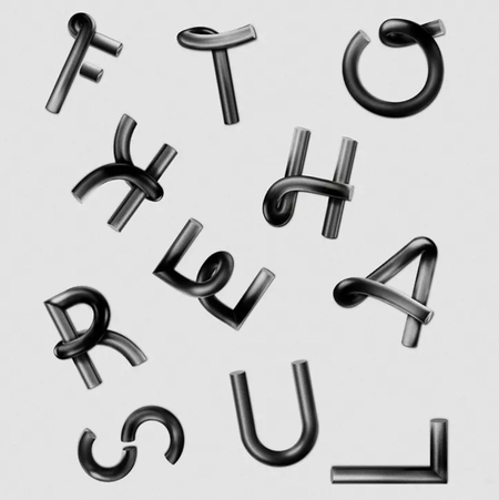 Тор Вейбулл — «Reflective Fascination». Экспериментальный шрифт, вдохновлённый пластикой изогнутых металлических труб и отражающими поверхностями.