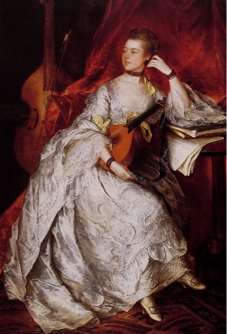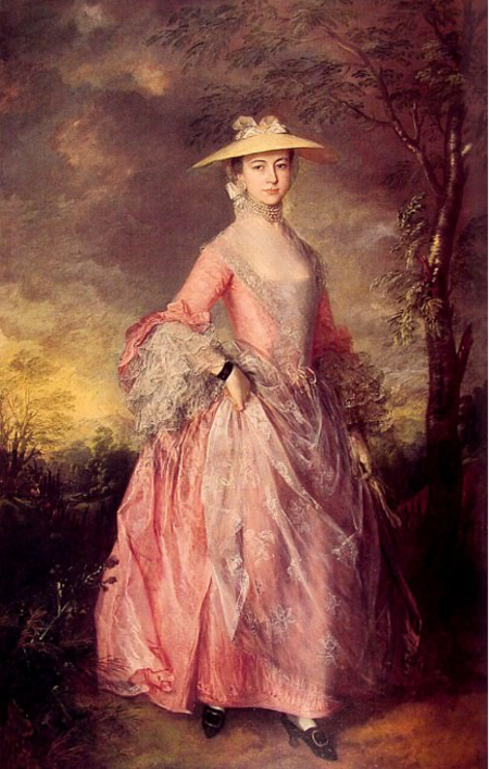 Картины Гейнсборо явно отличаются от французского рококо, — в британской традиции, более сдержанной, рациональной и ориентированной на социальный статус. Кружево в его портретах приобретает иной смысл, мы снова возвращаемся к признаку богатств и элитарности.