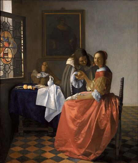 Ян Вермеер «Дама с бокалом вина» (1658–1660 г.) «Дама, стоящая у вирджиналя» (1670–1672 г.)