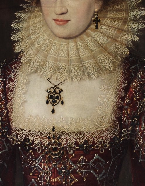 В живописи Антониса ван Дейка кружево является одной из деталей, которое сразу бросается в глаза. Работая при английском королевском дворе, ван Дейк создавал парадные портреты, в которых кружево становилось важным символом статуса, богатства и аристократического происхождения. Его внимание к деталям — тонким воротничкам, манжетам, кружевным жабо — проявлялось в мягкой манере работы кистью. Он передавал кружевной рисунок не слишком четко и детально, а через игру света и тени, показывая легкость, пластичность и изящность ткани.