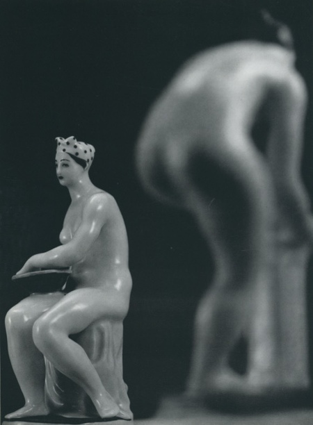 Женщина с тазиком на коленях. 1924. Фарфор, надглазурная роспись. СКС-838; Кариатида. 1924. Фарфор, роспись. СКС-840