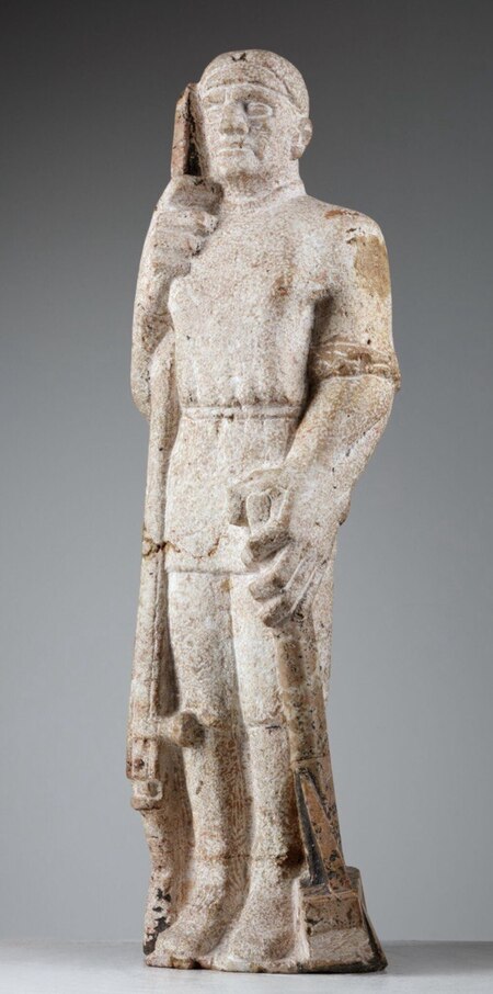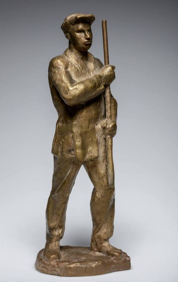 Рабочий со знаменем. Этюд для проекта памятника павшим бойцам СКДВ в Даурии. 1931. Бронза. СКС-835; Цаплин Дмитрий Филиппович. Оборона и труд. 1933-1934. Мрамор цветной