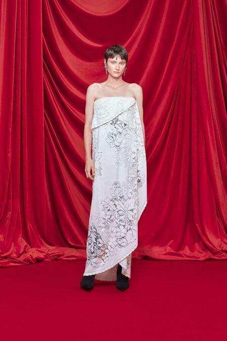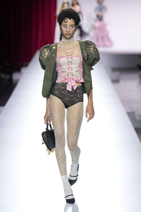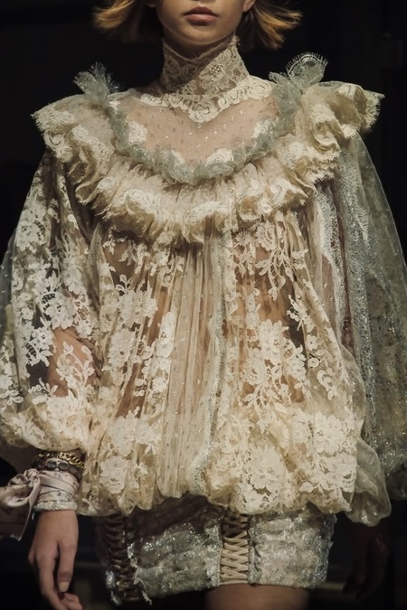 Dior, Moschino и Balenciaga используют кружево и гипюр как элемент контраста: оно может сочетаться с ультрасовременными формами, плотными тканями или провокационными аксессуарами, но все также притягивать взгляд к своим необычным рисункам.
