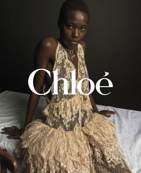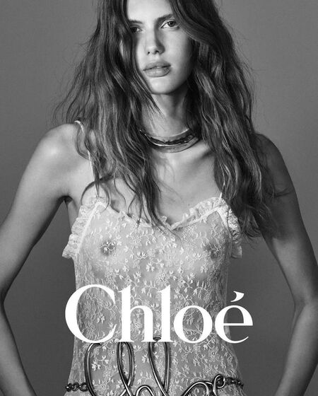 Chloe сохраняет романтичную элегантность, несмотря на яркие трансформации кружевных элементов в других брендах, они остаются преданными своему изначальному визуальному коду. Также как и Ermanno Scervino 2025, которые представили ажурные образы с иконной женственности Натальей Водяновой в рекламной кампании.