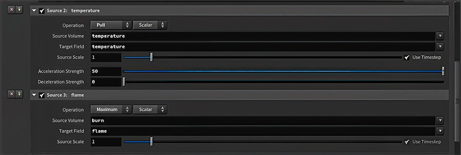 Все остальные операции с температурой оставляют сферу в виде статичного огня. Однако существует возможность изменить параметр «Source Scale», который определяет общее количество температуры в симуляции.