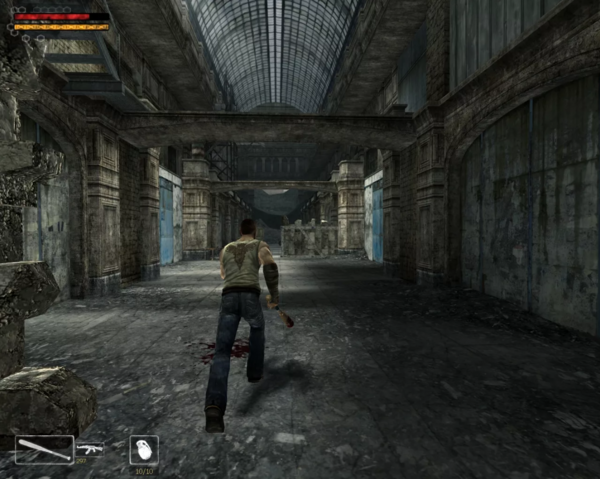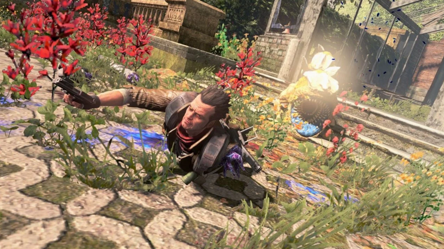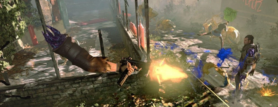 NeverDead строит геймплей вокруг буквальной потери тела: герой разлетается на части от любого удара, и это не провал, а рабочая механика. Игрок учится пользоваться распадом как инструментом — отползать от врагов одной головой, докатываться до нужных точек и собирать себя заново.