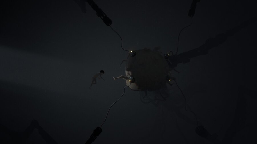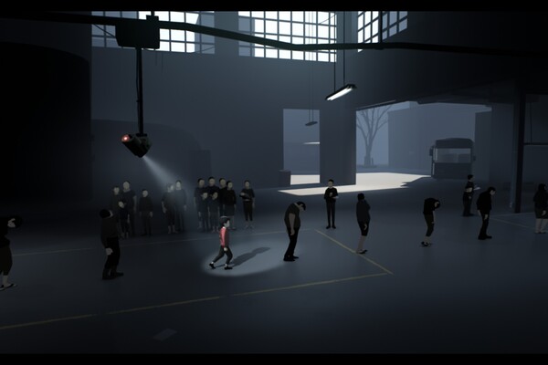 INSIDE постепенно подводит игрока к мысли, что тело в этом мире — материал для эксперимента. Герой постоянно сталкивается с обезличенными фигурами, которые движутся по внешнему сигналу, и это создаёт ощущение, что граница между самостоятельным телом и управляемым — уже размыта.