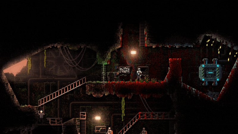 CARRION переворачивает привычную перспективу: игрок управляет существом, для которого тело — это текучая биомасса без фиксированной формы. Масса мгновенно растягивается, захватывает поверхности и проникает в узкие пространства, превращая уровень в гибкий материал, а не в набор зафиксированных препятствий.