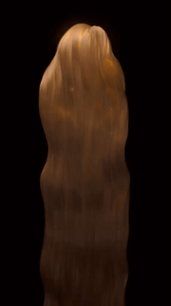 Добавив анимацию свечения, перемещающегося по поверхности прядей волос, можно добиться оригинального стилистического решения, позволяющего имитировать перемещение воздушных масс во время процесса горения.