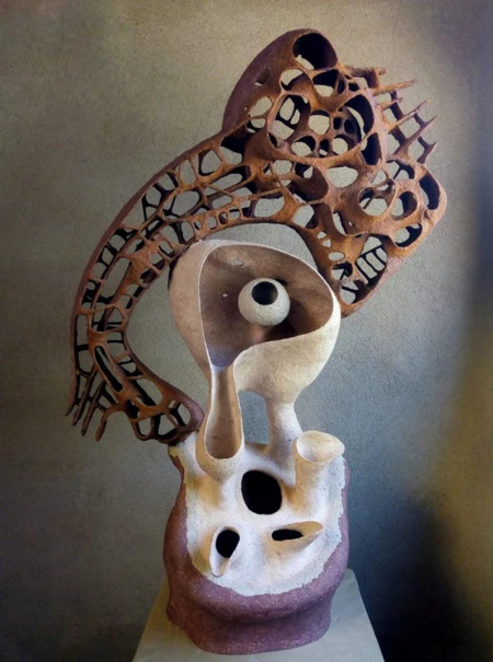 Biomorphic Exoskelton (Birth of Form) Paper Mache Abstract Sculpture «Xylem», biomorphic Round Clay Wall Sculpture Art