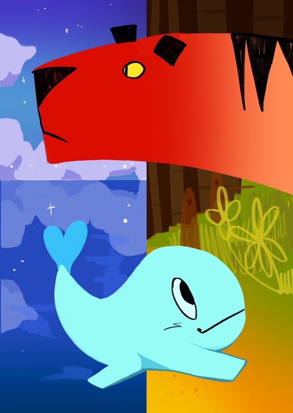 Рыбка, уставшая от тихого и скучного океана, решает поселиться на ярком острове.