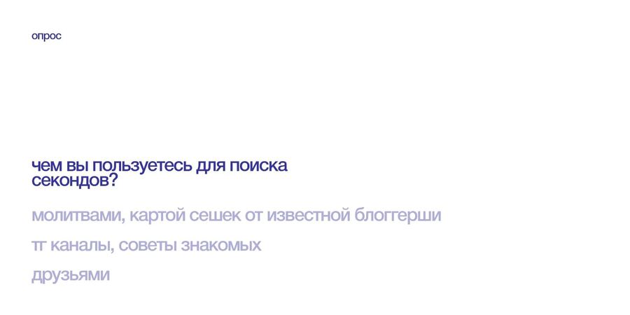 The logic behind developing DROP’s strategy follows a key point emphasized in the lectures: theory is needed not for abstraction, but to structure reality and to be able to change it. We began by describing the problem as a communicative one: people struggle to find unusual items amid the noise of marketplaces, and searching for new second-hand shops is inconvenient precisely because information is scattered across many channels and requires effort to collect. The survey in the presentation provided an objective foundation—percentages and wording that show the scale and nature of the barrier, as well as the ways people currently compensate for the lack of a single, unified channel. This is part of the objective approach: measuring and identifying a pattern.