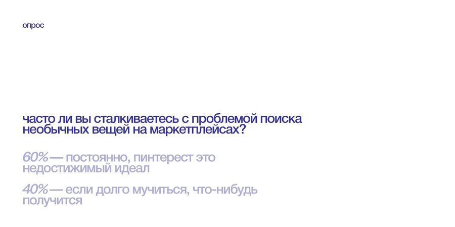 There is a feeling familiar to many people: you see ideal images—on Pinterest, in curated selections, in your feeds—and it seems as if somewhere there exists a whole world of «unusual things.» But once you move to real searching, everything falls apart: marketplaces keep showing the same items, the feed turns into endless noise, and the desire to find something «that’s truly yours» becomes hard work. Your mini-survey captures this almost word for word: for some people, Pinterest is perceived as an unattainable ideal, and searching for something unusual on marketplaces becomes a constant problem. This is an important observation: it points not merely to inconvenience, but to a gap between a cultural image (an ideal style) and the actual accessibility of that experience in real life. DROP appears precisely in this gap. It is a mobile app that brings together popular second-hand stores, vintage shops, and markets—so that searching for new and interesting places to buy vintage clothing becomes clear and fast. The point of DROP is not «yet another address database,» but reducing the informational noise between a person and a find. Where today people have to collect information from friends, Telegram channels, bloggers’ maps, and random tips, DROP consolidates it into a single channel and turns the search into a route.
