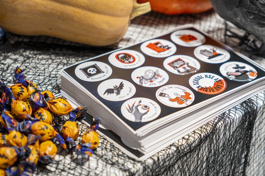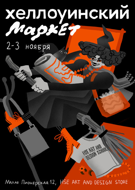 2–3 ноября в Школе дизайна прошёл маркет искусства и дизайна. Дата мероприятия была приурочена к Хеллоуину, поэтому айдентика выполнена в соответсвующей тематике.