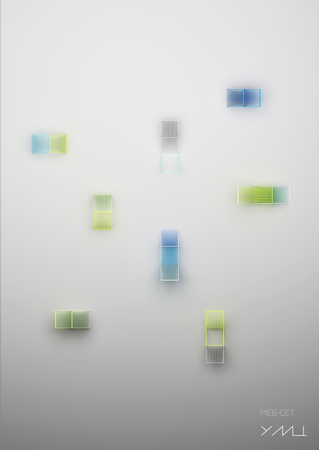 Проект парковых объектов, собирающихся из 3х типов металлических модулей. Выполнен в минималистичной манере из простых геометрических модульных форм. Благодаря своей универсальности, удобству изготовления, установки и эксплуатации сет возможно вписать в любой тип местности.