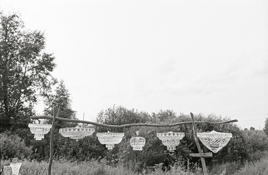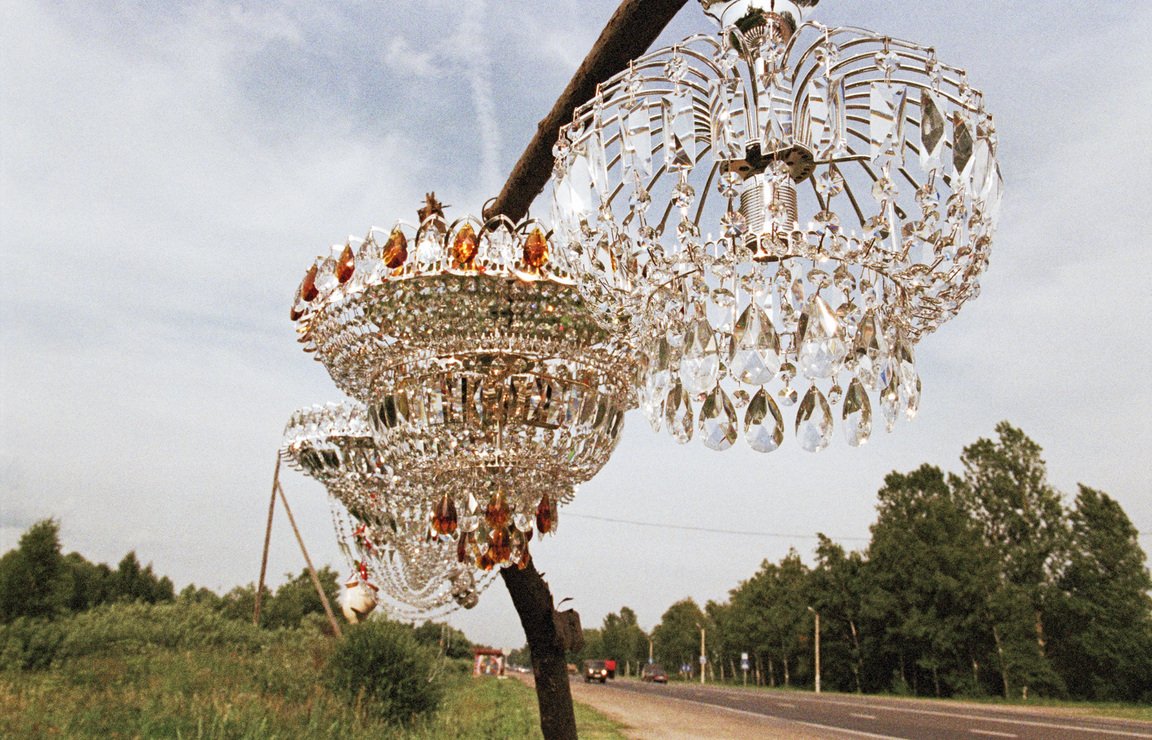 Название выставки отсылает к серии фотографий «On the Sidelines» (2010). В этой работе отражается художественный подход характерный для творчества Чернышевой в целом. Фотографии показывают изобретательность и творчество людей, пытающихся заработать на жизнь. В данном случае рабочего, который вместо зарплаты получает продукт своего труда — люстры. Он пытается продавать их, развешивая вдоль туристических дорог, как в витрине. В этом в равной степени прагматичном и поэтичном подходе художница обнаруживает красоту.