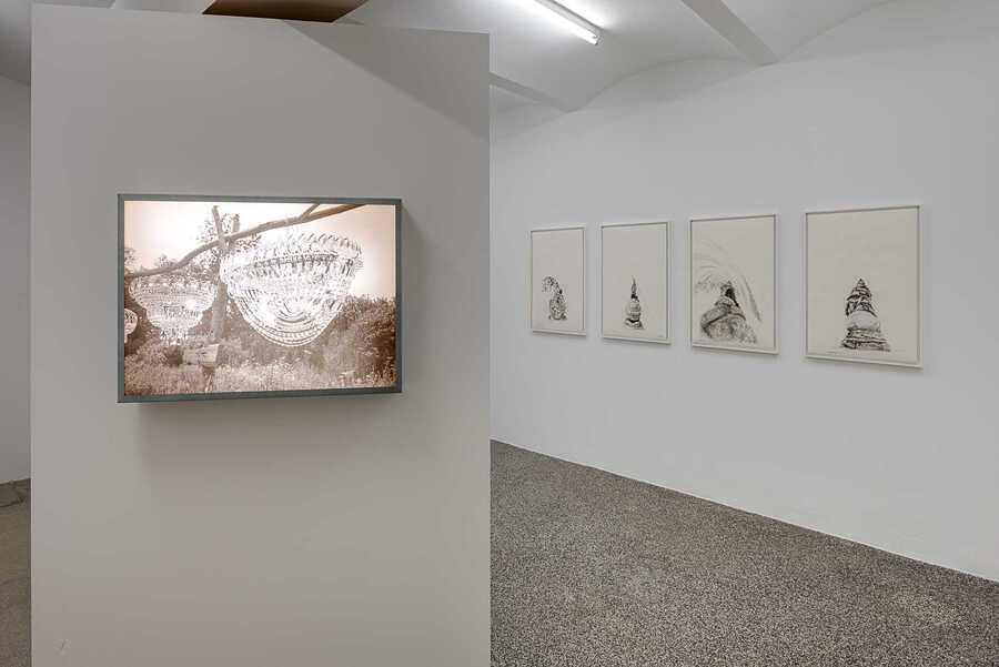 Ольга Чернышева «Chekhov Museum» (2017) Вид экспозиции на выставке «Chandeliers in the Forest» в галерее Secession (Вена, Австрия), 2017 год. Фотограф: Lorenz Seidler.
