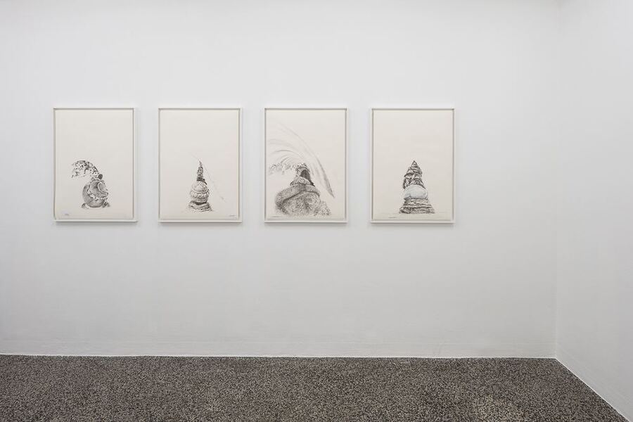Ощущение физического дискомфорта усиливается благодаря тому, что рисунки представлены в одной раме размером более 13 футов, установленной параллельно лестнице. Когда в будущем работы будут выставляться в более традиционных местах, ромбовидная форма будет напоминать о первоначальном месте экспозиции.