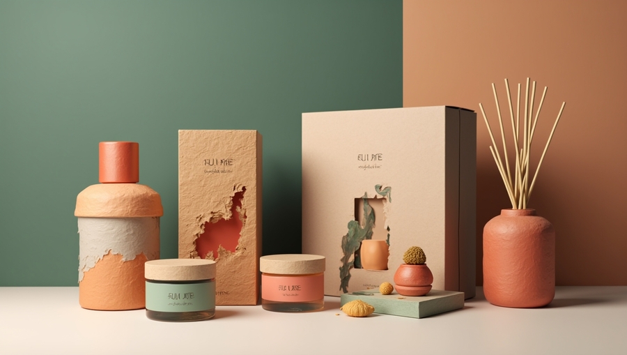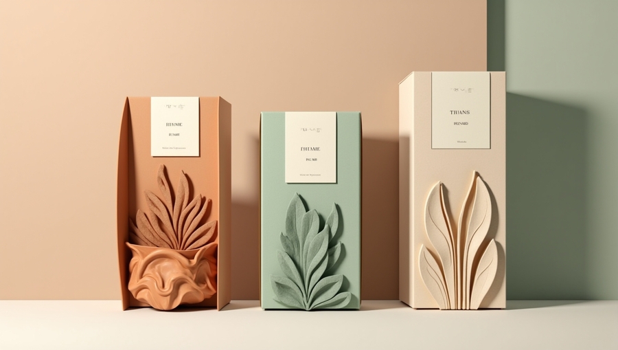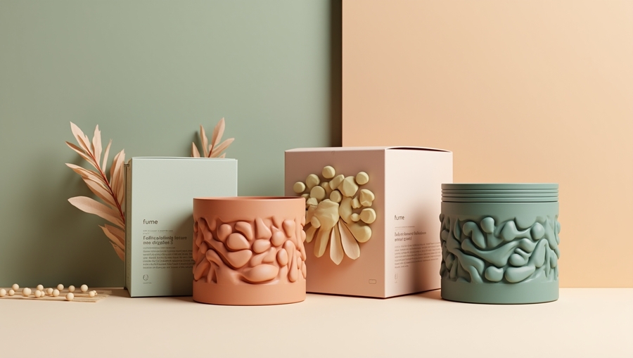 Стандартная упаковка представляет из себя коробку из переработанного картона в минималистичном дизайне с указанием названия бренда, аромата и кратким описанием. Может иметь окошко для визуального представления продукта и рельефные природные формы. Цветовая палитра выдержана в спокойных природных тонах.