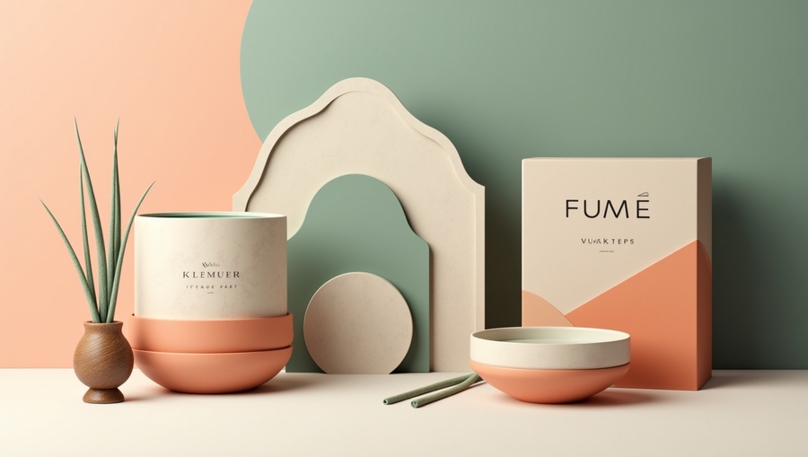 5. Design a range of merchandise for the Fume incense brand. Maintain the established Fume color palette (specify colors if known, e.g., «earthy tones, muted pastels, subtle metallics») and incorporate subtle, abstract representations of natural forms, inspired by the organic shapes found on Fume packaging. The merchandise should be stylish, understated, and reflect the brand’s sophisticated and natural aesthetic. Focus on creating designs that appeal to a discerning customer who appreciates high quality and subtle branding. Design an incense holder for the Fume incense brand. The holder should be made from natural materials such as wood or ceramic. Incorporate organic shapes and colors.