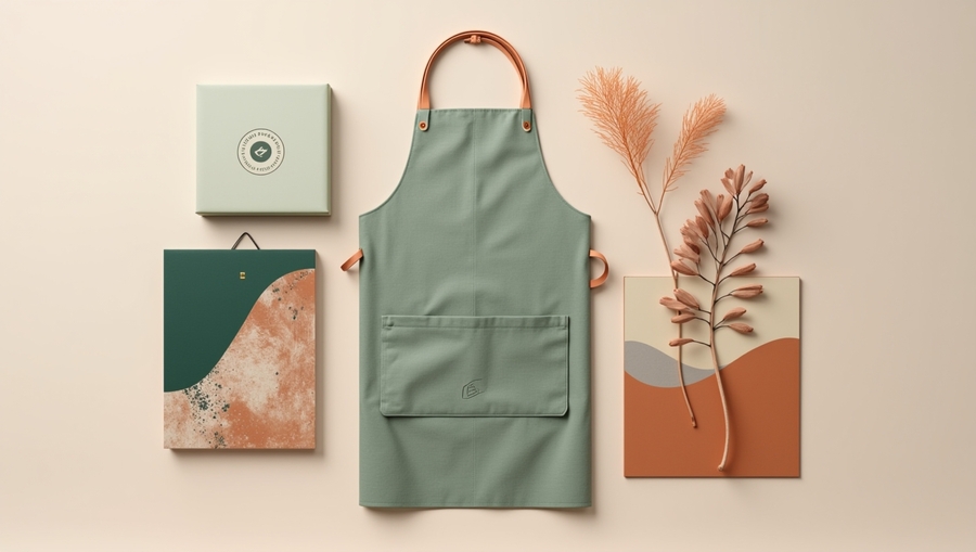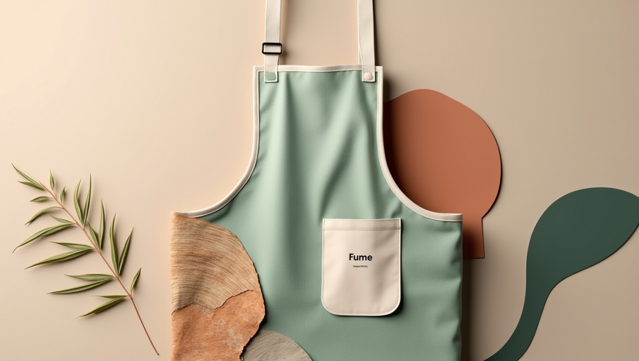 2. Design a range of merchandise for the Fume incense brand. Maintain the established Fume color palette (specify colors if known, e.g., «earthy tones, muted pastels, subtle metallics») and incorporate subtle, abstract representations of natural forms, inspired by the organic shapes found on Fume packaging. The merchandise should be stylish, understated, and reflect the brand’s sophisticated and natural aesthetic. Focus on creating designs that appeal to a discerning customer who appreciates high quality and subtle branding. Design an apron for the Fume incense brand. The apron should be made from durable, high-quality material (e.g., canvas or linen). The design should be functional and stylish. Incorporate the Fume color palette (e.g., a muted green or earthy brown). Feature a subtle, abstract pattern inspired by natural textures (e.g., wood grain or stone) as the background. Include a small Fume logo or a minimalist graphic on the front pocket.