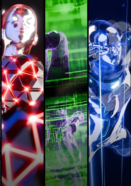 1. Концепция — Разработка образа: футуристичный дизайн (голографические элементы, неоновые акценты). — Сценарий: короткие реплики и переходы между 3D-сценами