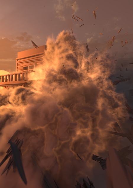На закате солнца грянул взрыв, который разнёс заброшенный салун в щепки. Динамит, заложенный где-то в стенах, разнёс строение в щепки, озарив окрестности яркой вспышкой. Когда пыль осела, на месте салуна остались только догорающие обломки.