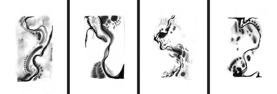 Я заметила, что постоянно пытаюсь всё структурировать, дать себе какую-то задачу, назначить цель, но почти никогда эта цель не заключалась в самом очевидном — позволить себе быть собой, не ссылаясь на поиск смыслов. Моё отношение к своим работам постоянно менялось, я пыталась пробовать разные техники и расстраивалась, когда все наработки оказывались противоположными друг другу («оно же не складывается в серию!»), старалась «нащупать» себя и свое проявление в туши, и испытала буквально весь спектр эмоций по отношению к своим работам.