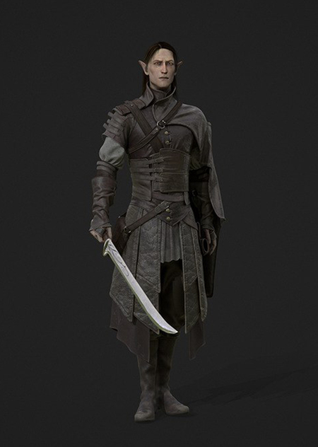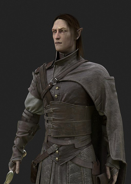 3D модель персонажа для компьютерной игры — Эльф в боевом обмундировании с оружием.