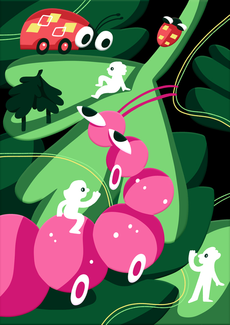 А вот и новые герои — улитка-мопед, жук-монстр трак и муха-комбайн. Каждый поселился на квадратной подушке.