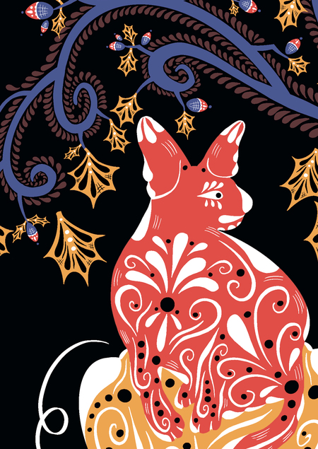 Серия иллюстраций в современной интерпретации Городецкой росписи. Героями этой истории стали кошки, пластичность и грациозность которых слились воедино с традиционными рукописными элементами узорчатости. Проект предусматривает размещение изображений на разных носителях.