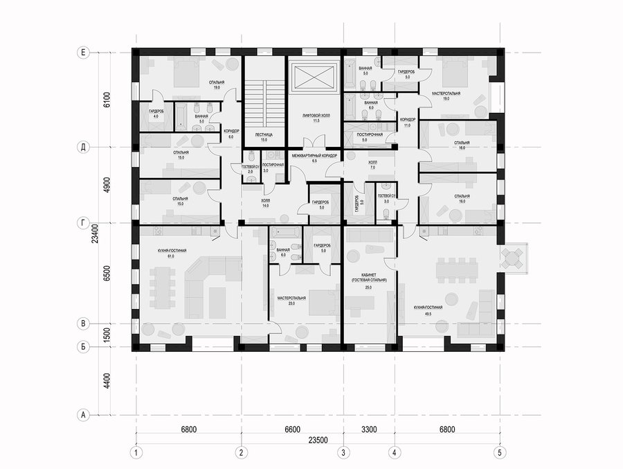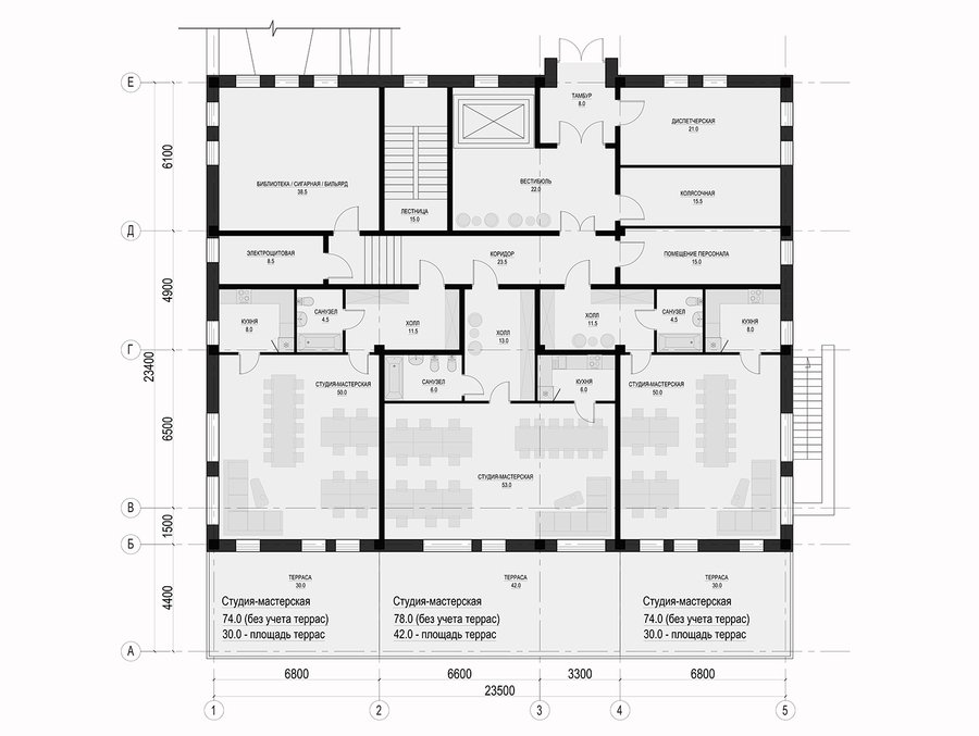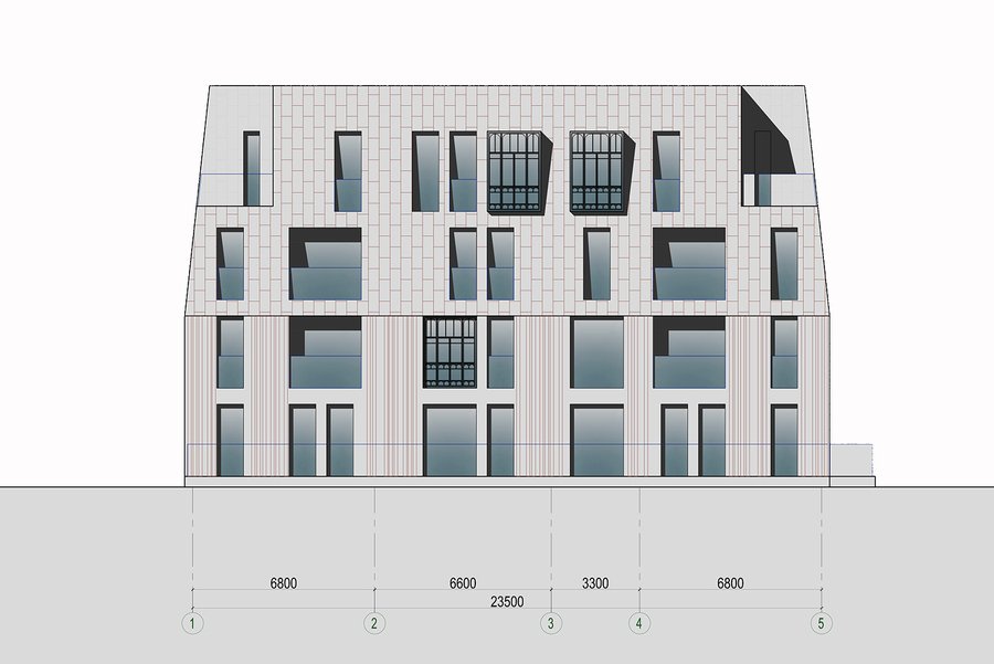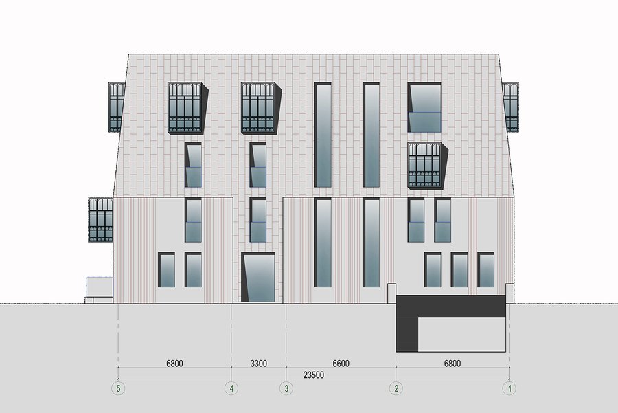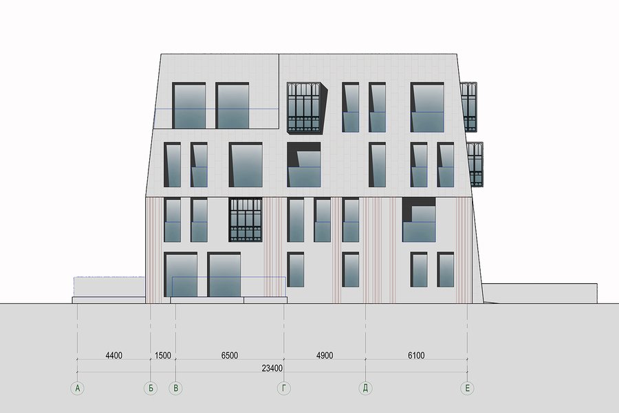 Концепция апарт-отеля в поселке Лисий Нос. Для Заказчика было важно, чтобы здание имело своеобразный силуэт и этом не сильно выделяясь по форме, масштабу и цвету из окружающей застройки. Было выполнено множество вариантов фасадов и планировочных решений. Проект находится в процессе согласования Для меня имел значения исторический контекст и его актуальная интерпретация, поэтому минималистичные эркеры на скатной части медной кровли выполнены с расстекловкой цвета и формы, которая была на террасах дома, ранее располагавшемся на этом участке.