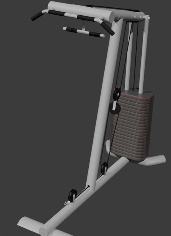 Разработана 3д модель тренажёра с настройкой материалов. Разработана серия анимаций упражнений, выполняемых на тренажёре.