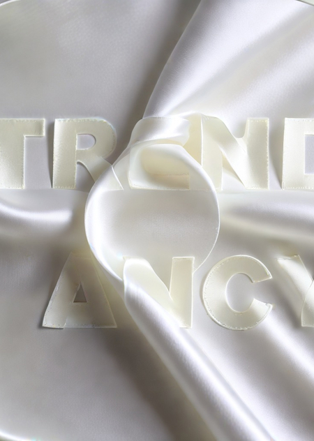 promotional materials (banners, posters) for sporty white silk clothes with the inscription «Trendancy» with minimal illustration of the banner